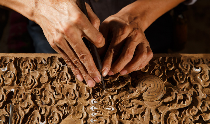 “打磨、压拼、雕刻”